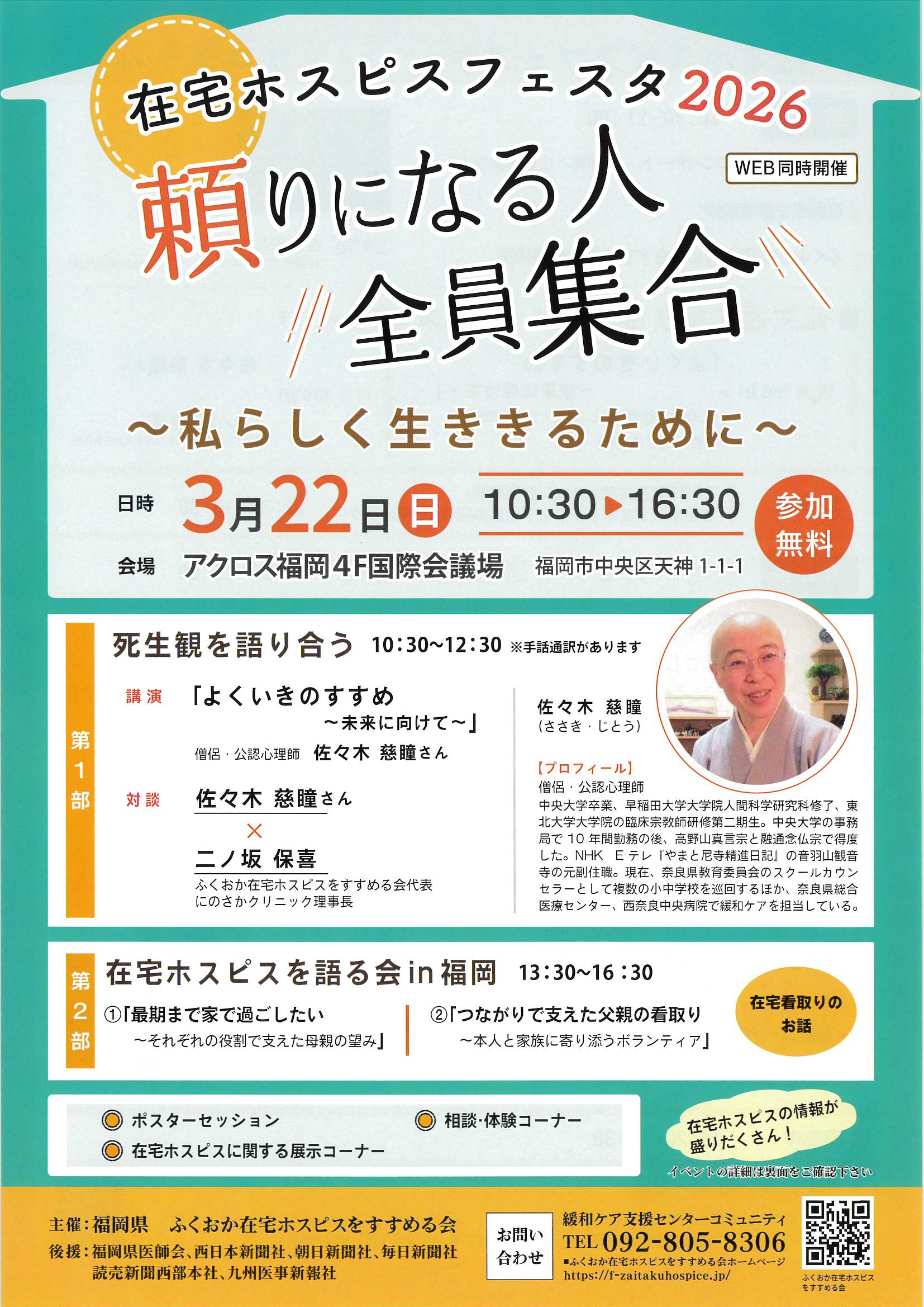 在宅ホスピスや在宅での看取りについて考えるイベントを開催します。